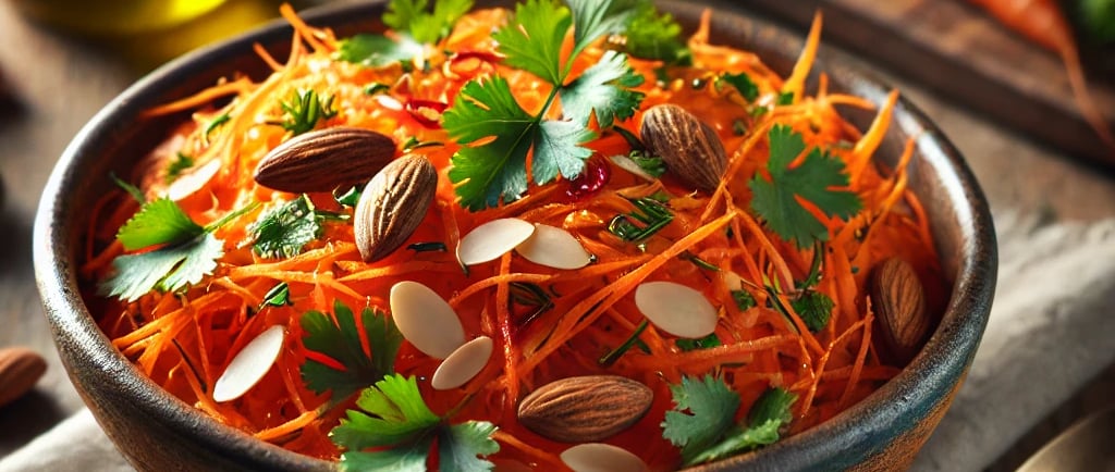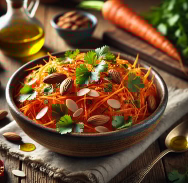 Packed with antioxidants and vibrant flavors, this carrot salad is a simple yet nutrient-dense dish. Carrots are rich in beta-carotene, a powerful antioxidant, along with heart-supporting and anti-inflammatory nutrients. This salad is light, crunchy, and bursting with freshness!