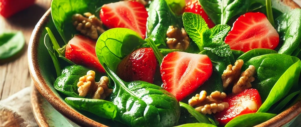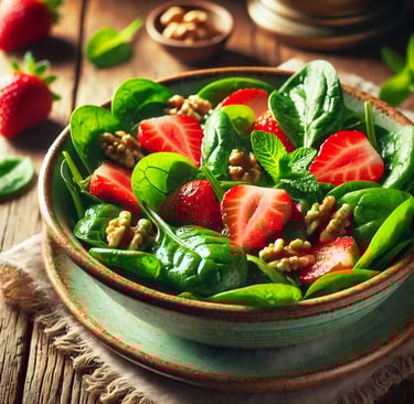 Light, refreshing, and packed with fiber, vitamin C, and healthy fats, this summer salad is bursting with sweet and tart flavors! The toasted walnuts add a delicious crunch, perfectly complementing the juicy strawberries.